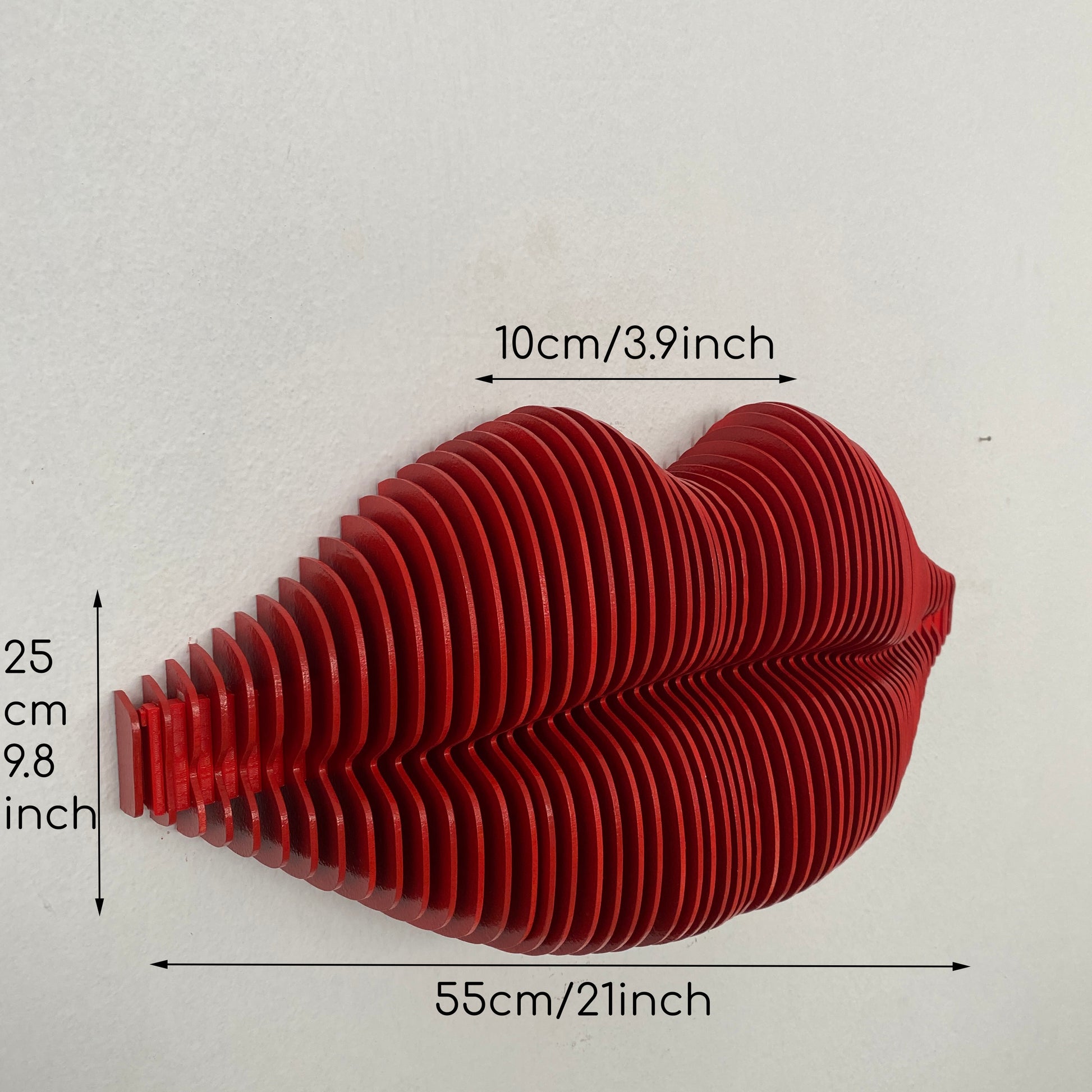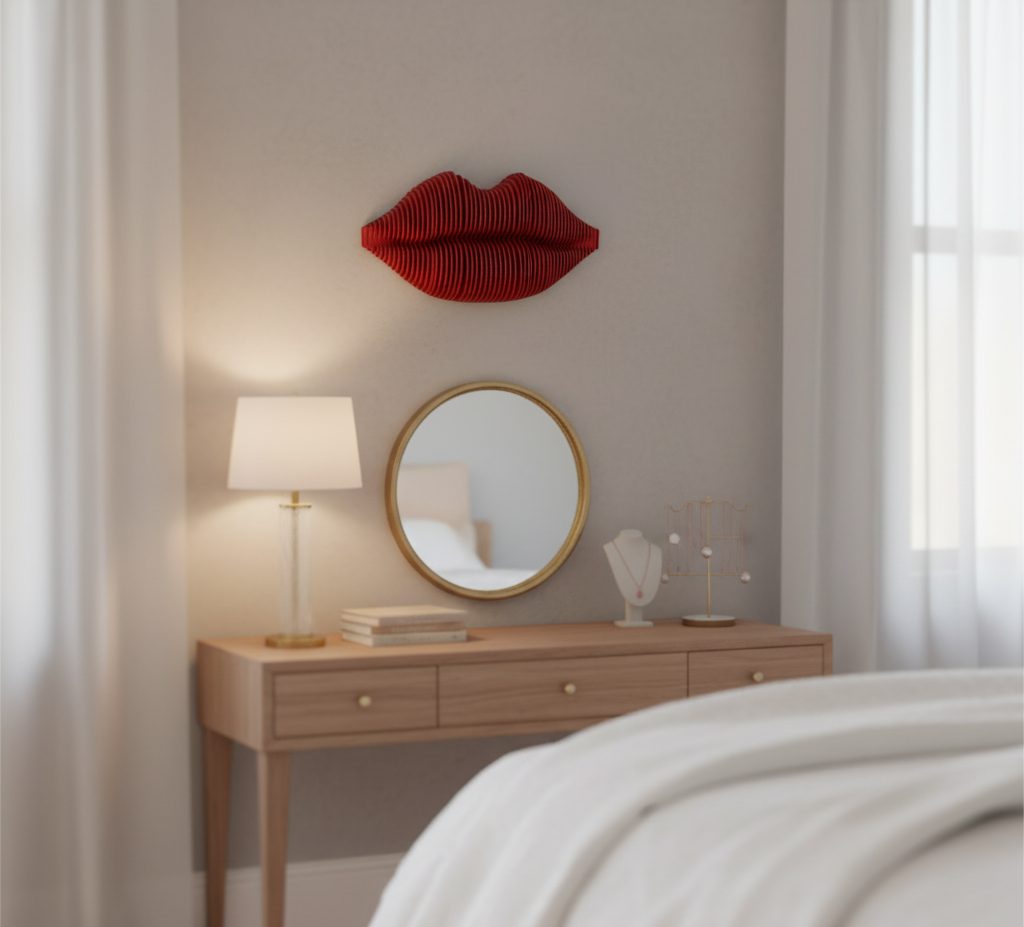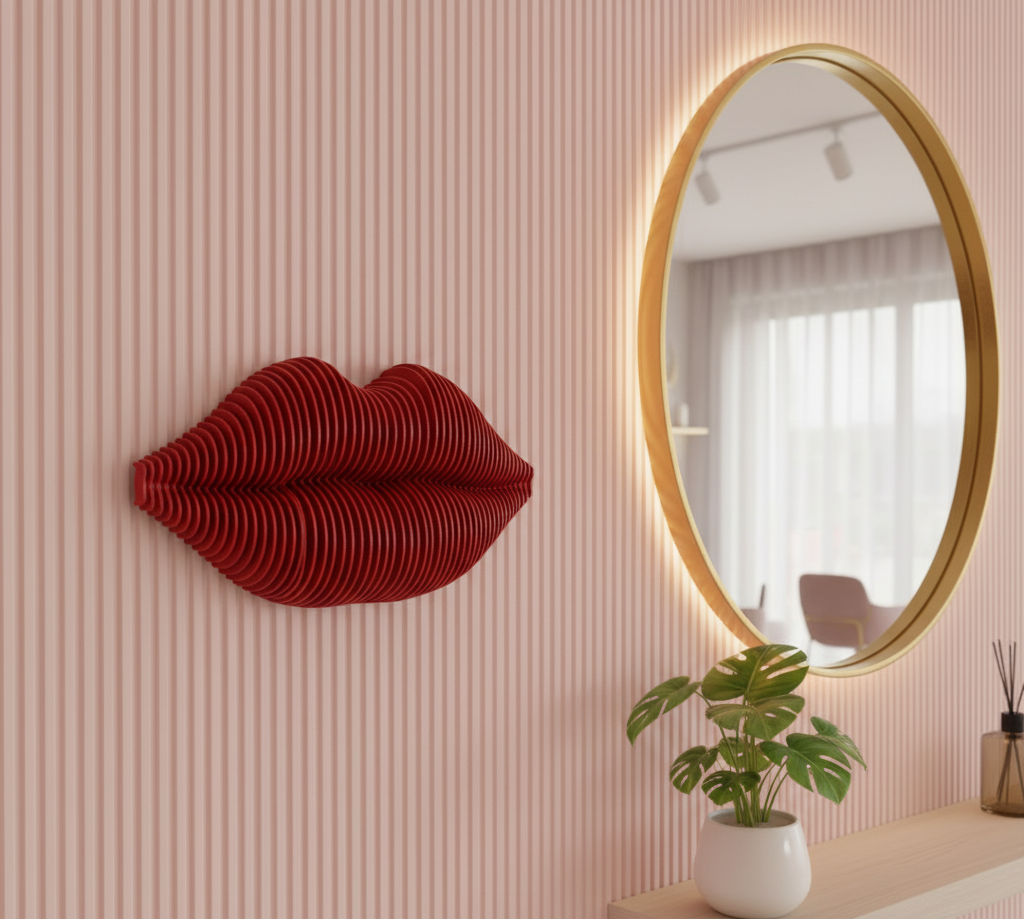Bu modern 3D dudak duvar dekoru, mekânınıza cesur, şık ve sanatsal bir dokunuş katar. Katmanlı yapısı sayesinde derinlik hissi yaratarak bulunduğu alana farklı bir karakter kazandırır. El işçiliğiyle hazırlanmış bu özel parça, 3D baskı teknolojisiyle güçlendirilmiş dayanıklı malzemeden üretilmiştir.