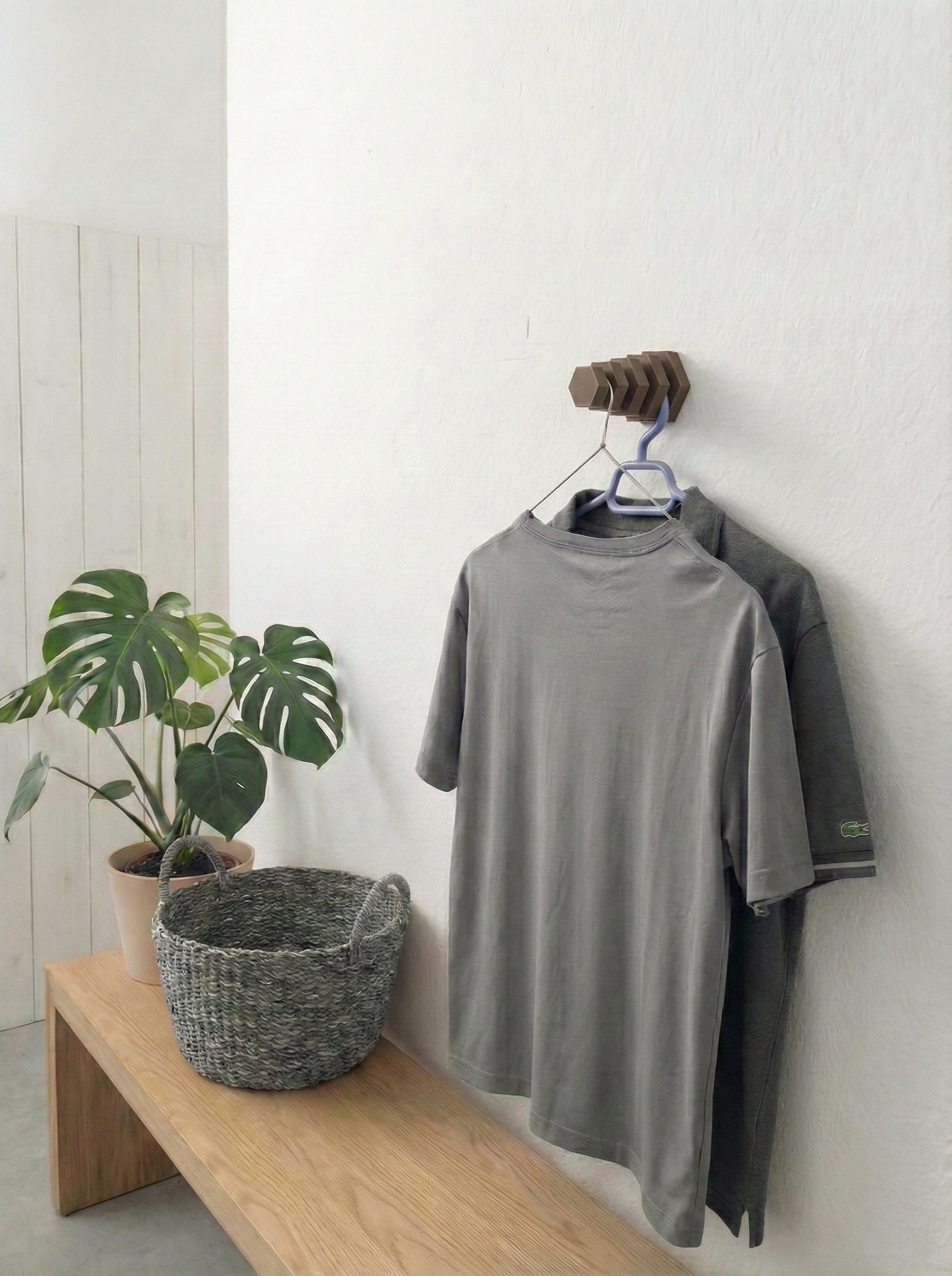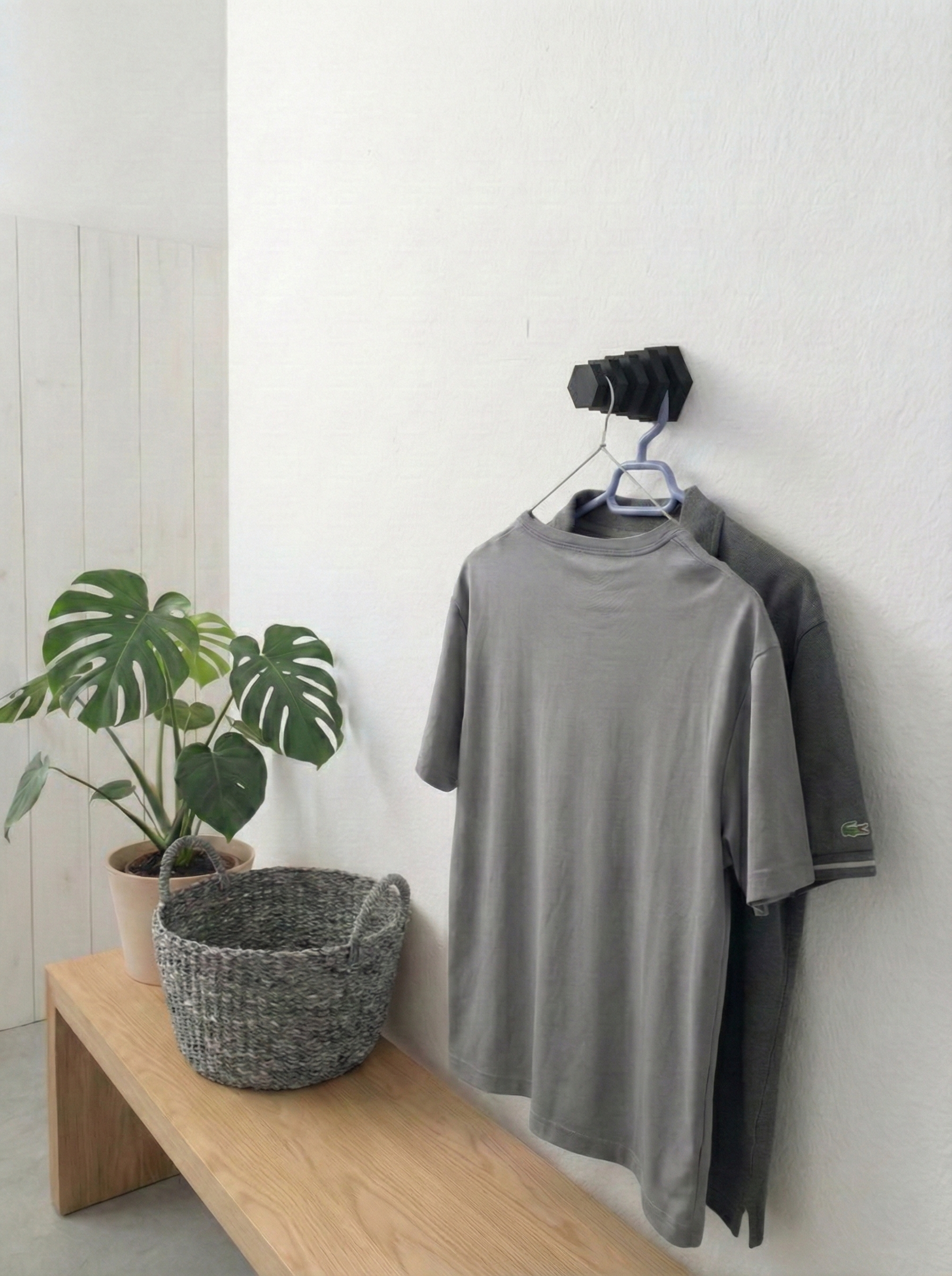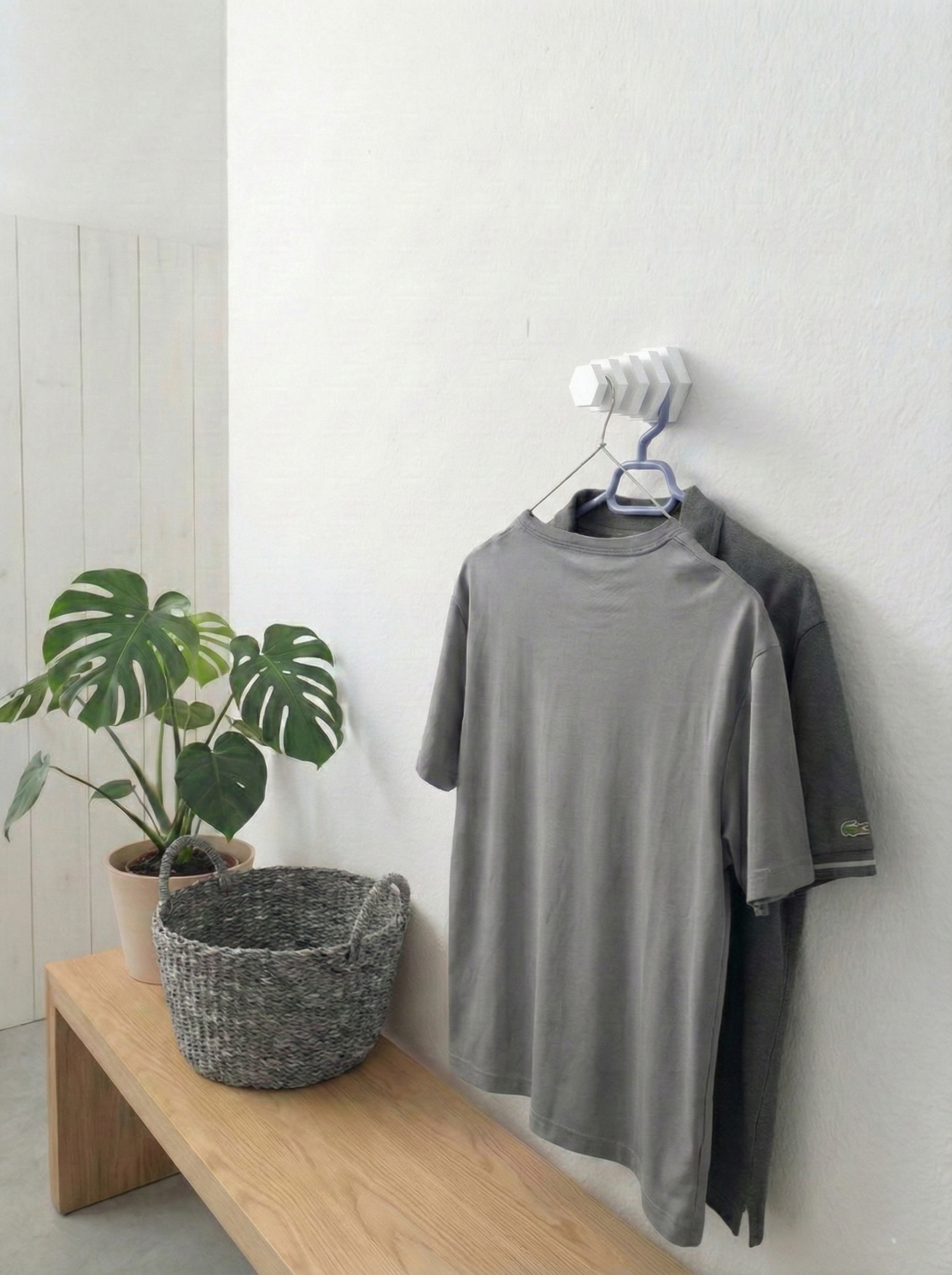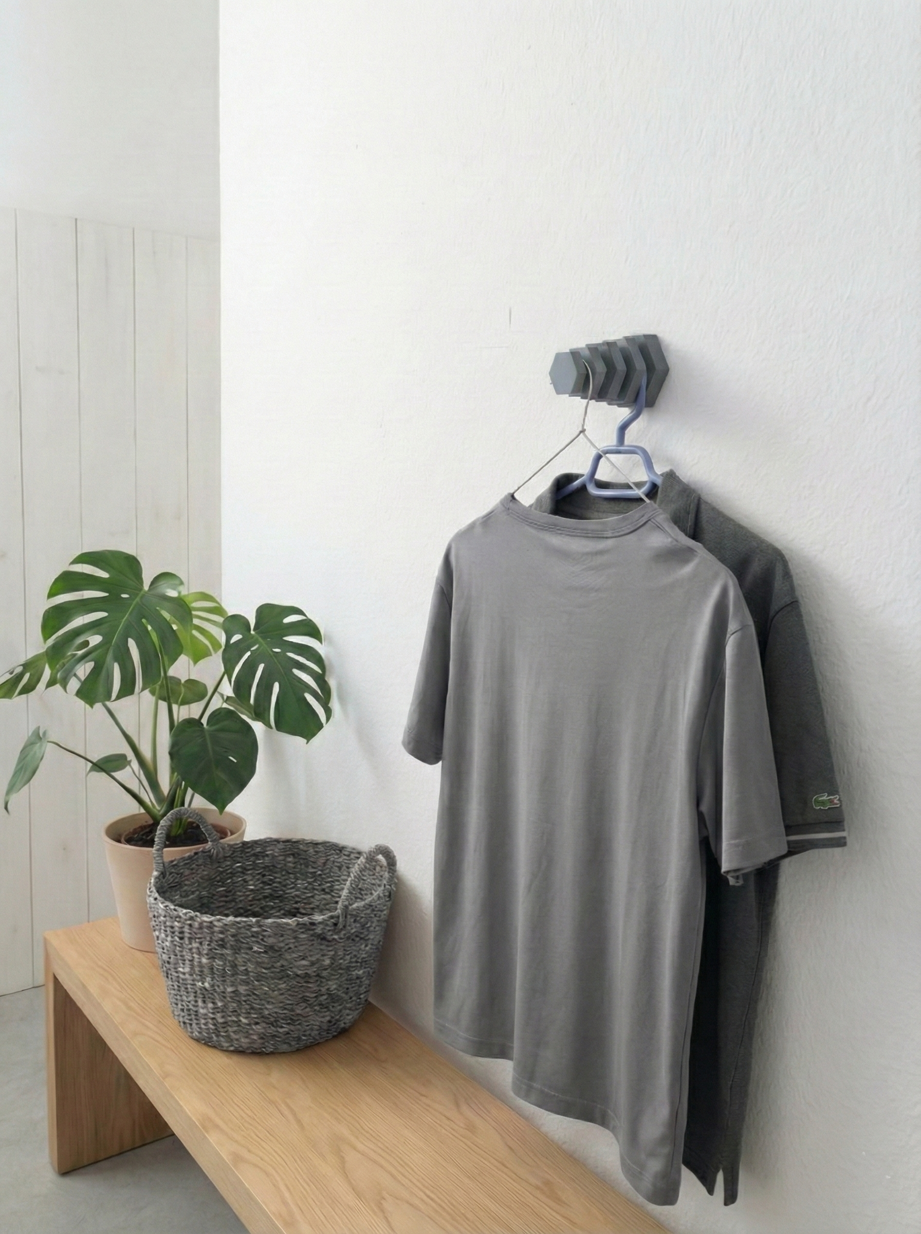 Altıgen formdan ilham alan bu 3D baskılı askı, dikey kullanım için tasarlanmış 4 güçlü kanca ile gömlek, tişört, ince ceket vb. için yerden tasarruf sağlayan pratik bir çözüm sunar. Interfuse güçlendirme tekniği ile, standart 3D baskılara kıyasla daha sağlam ve uzun ömürlüdür. Antre, çamaşır odası, yurt/atölye gibi dar alanlarda düzen kurmak için idealdir. Duvar montaj vidaları dahildir. Renkleri birden fazla adet siparişte kişiselleştirme alanında belirtebilirsin.
