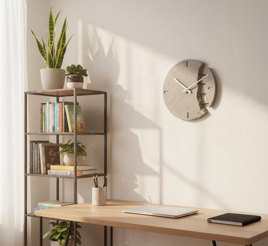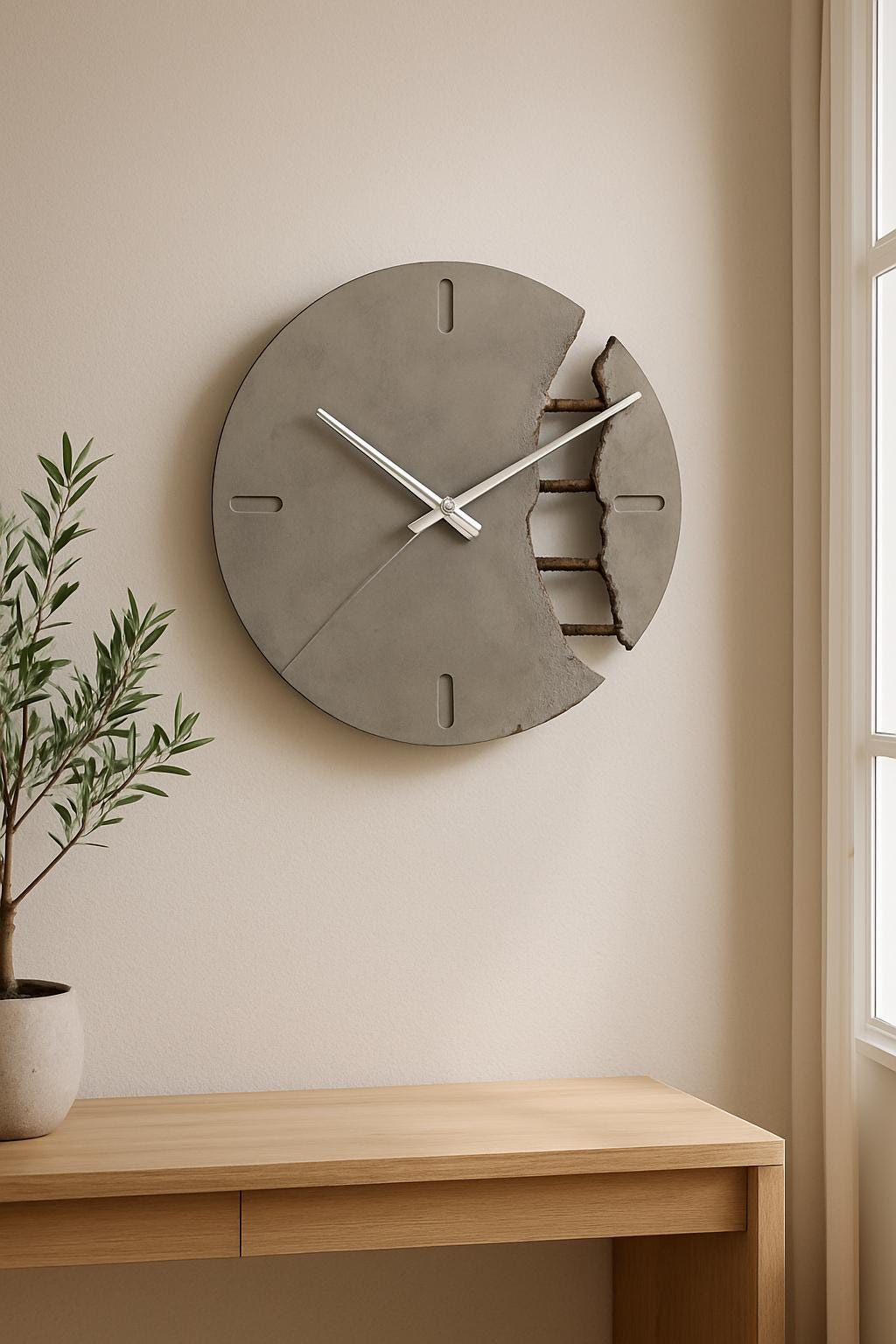 Brütalist Beton Duvar Saati – Endüstriyel / Mimari Dekor