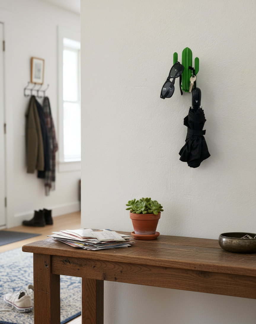 Bu kaktüs duvar askısı, dekoratif ve işlevsel bir çözüm sunar. Modern ve eğlenceli kaktüs formuyla hem duvarınızı süsler hem de ceketlerinizi, çantalarınızı, gözlüklerinizi, anahtarlarınızı hatta küçük şemsiyelerinizi asmanız için pratik bir askılık görevi görür.