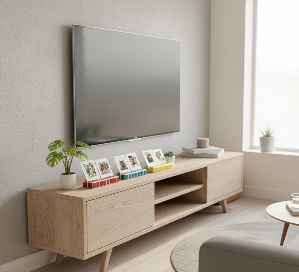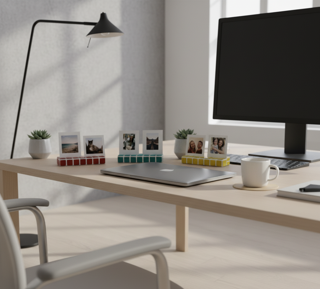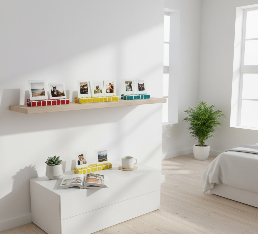 Tasarım El Yapımı Mozaik Fotoğraf Standı – Renkli Polaroid & Instax Sergileme