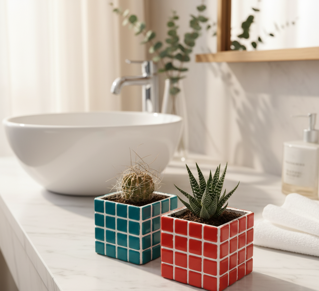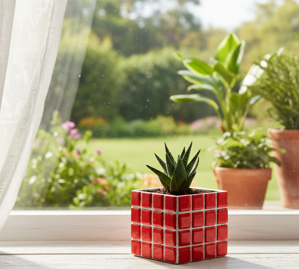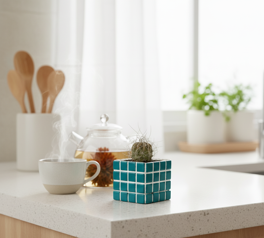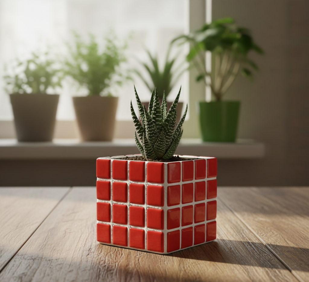 El işçiliğiyle üretilmiş renkli mozaik saksı, hem bitkileriniz için şık bir yuva hem de dekoratif bir obje olarak evinize veya ofisinize zarif bir dokunuş katar. Cam mozaik taşlarla kaplanmış özel tasarımı sayesinde her saksı benzersizdir.