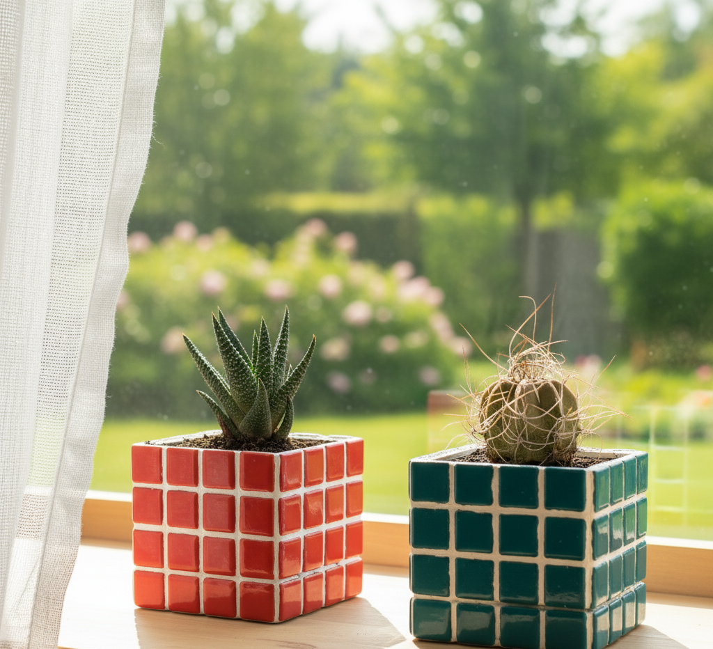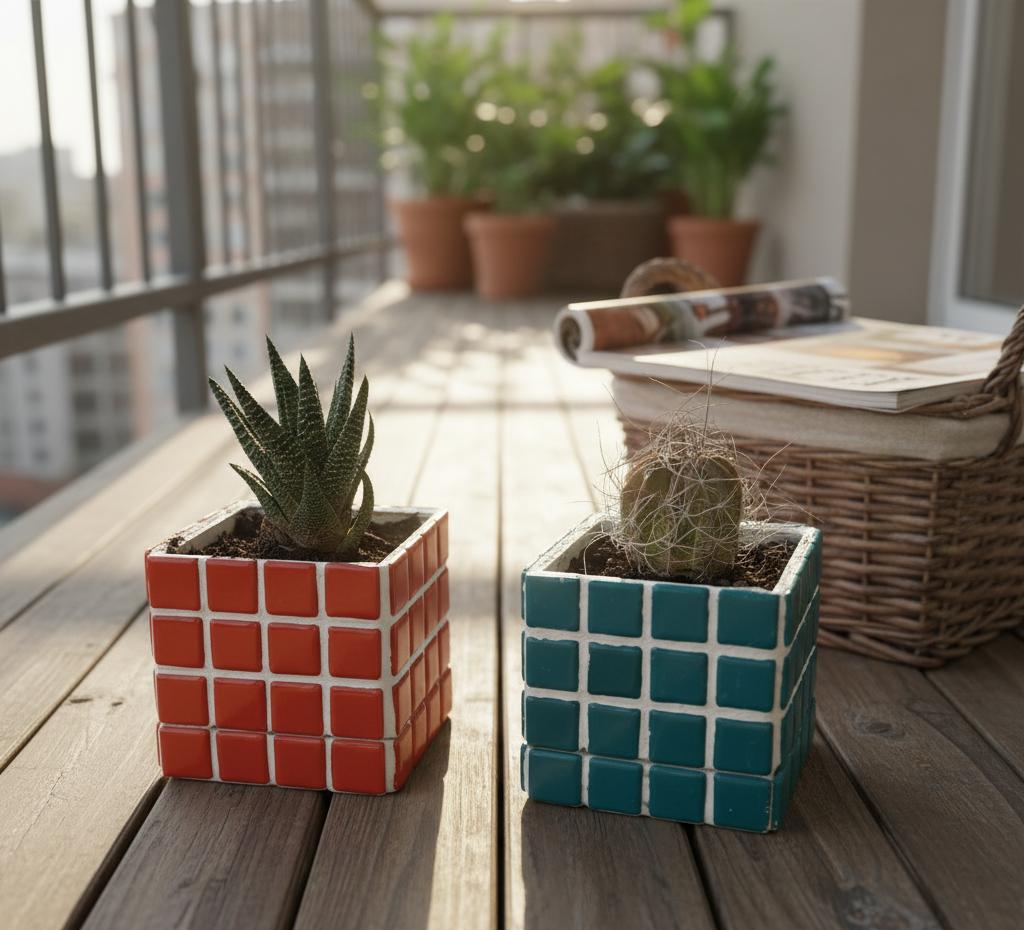 İkili El Yapımı Mozaik Saksı | Damlama Tepsisi