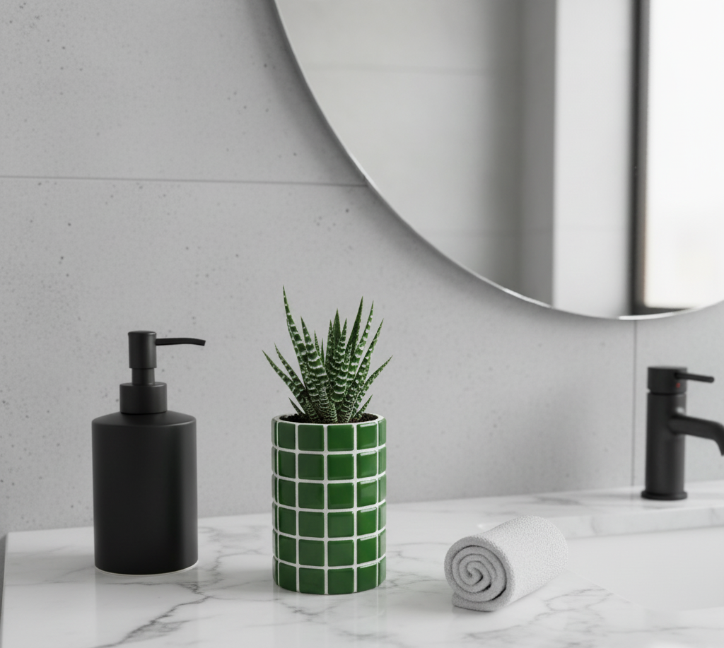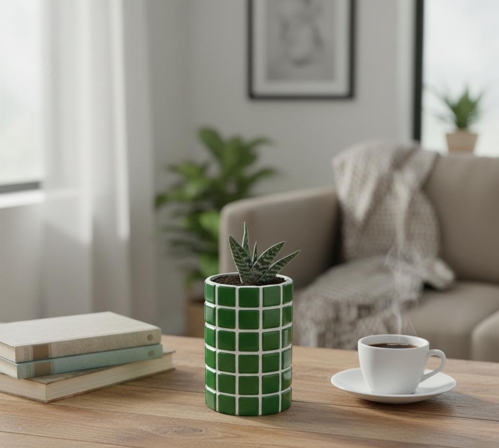 Her saksı el yapımı olduğu için küçük farklar, mozaik diziliminde değişiklikler ya da ölçü sapmaları olabilir; bu farklılıklar ürünün özgünlüğünü artırır.