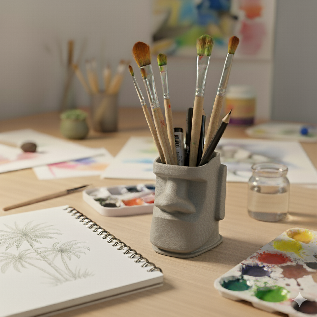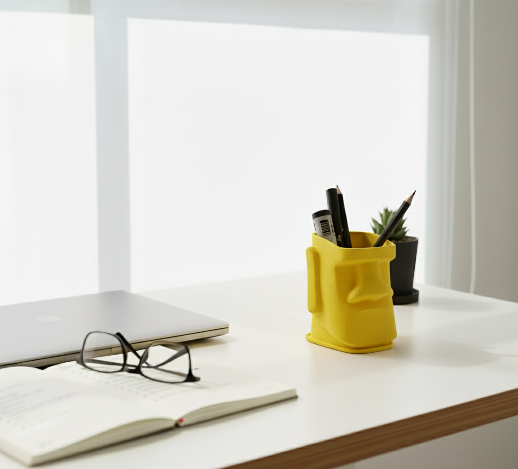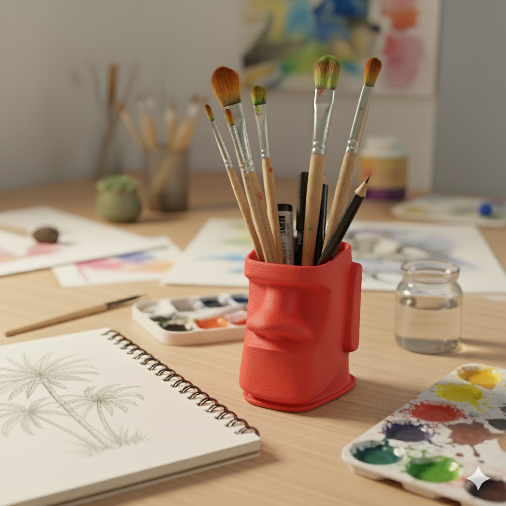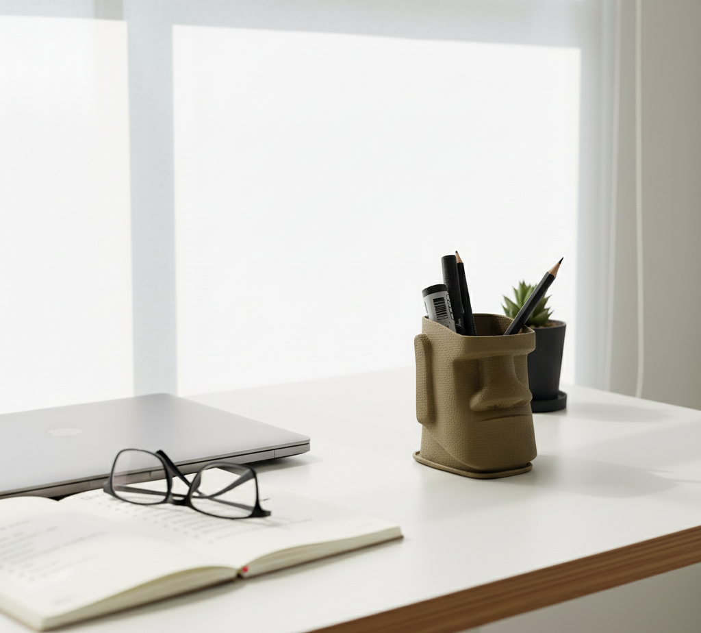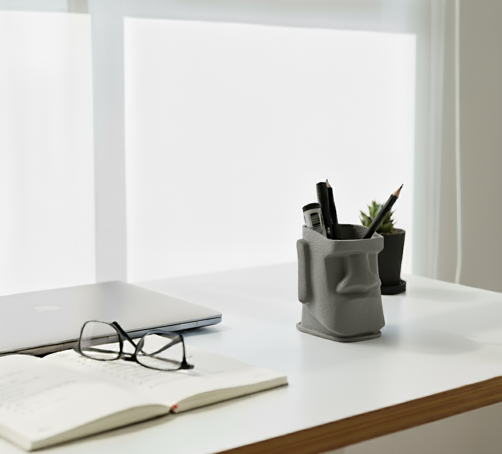 Masana karakter katan bu Moai Kafası Kalemlik ile düzeni şıkça sağlayın. Paskalya Adası heykellerinden ilham alan bu masa aksesuarı, işlevselliği cesur ve eğlenceli bir tasarımla birleştirir. Dayanıklı, temas açısından güvenli PLA malzemeden üretilmiştir; kalem, tükenmez, marker, fırça ya da küçük araç-gereçleri düzenlemek için idealdir. Heykelsi formu sayesinde yalnızca pratik bir düzenleyici değil, aynı zamanda dikkat çeken özgün bir masa dekorudur.