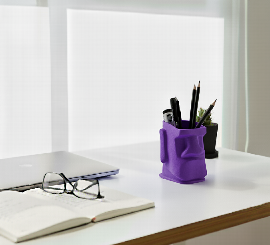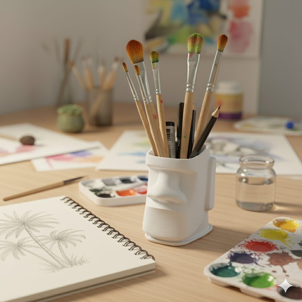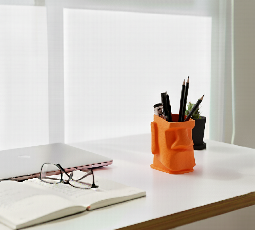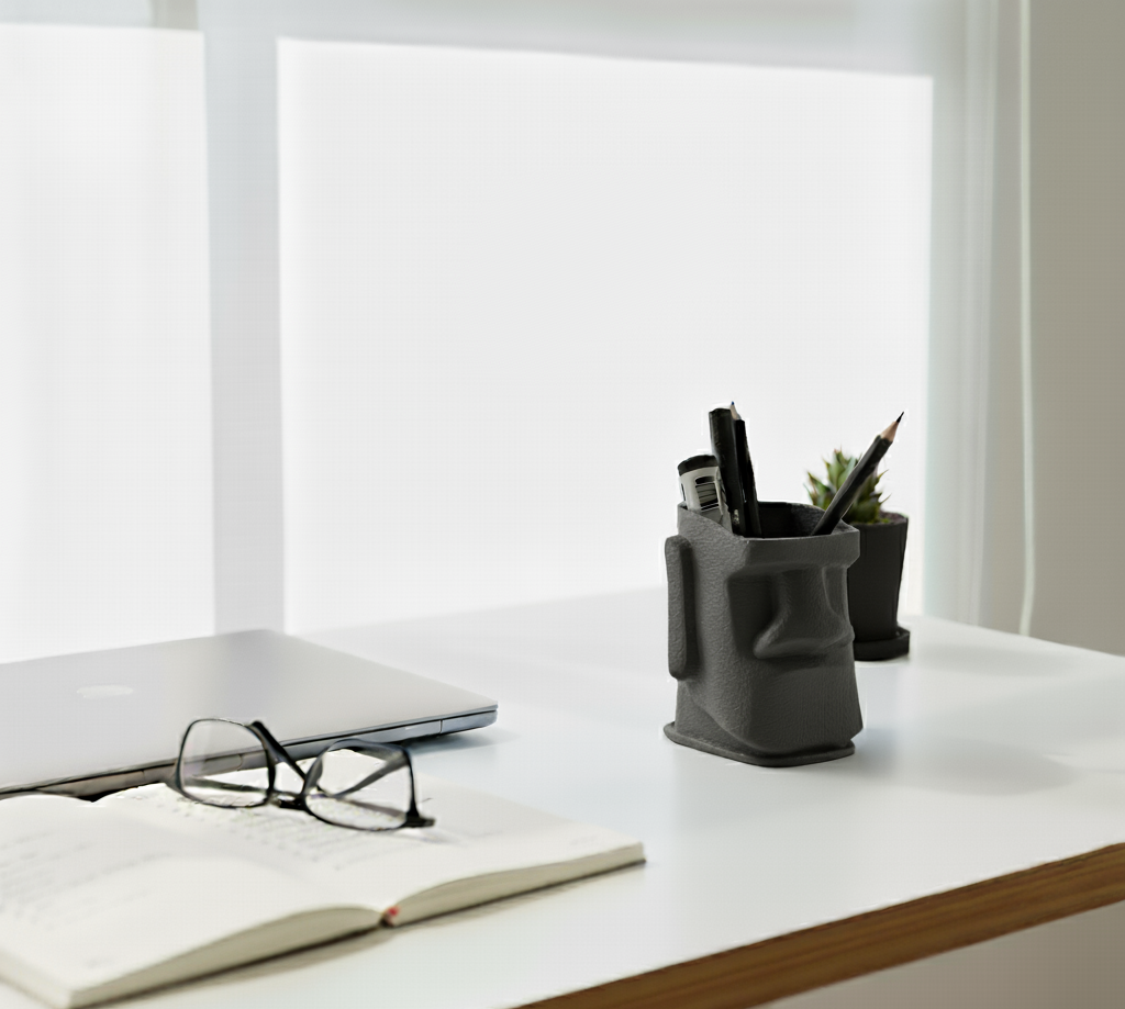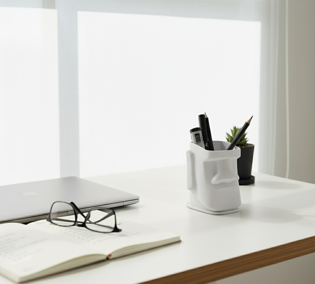 Masana karakter katan bu Moai Kafası Kalemlik ile düzeni şıkça sağlayın. Paskalya Adası heykellerinden ilham alan bu masa aksesuarı, işlevselliği cesur ve eğlenceli bir tasarımla birleştirir. Dayanıklı, temas açısından güvenli PLA malzemeden üretilmiştir; kalem, tükenmez, marker, fırça ya da küçük araç-gereçleri düzenlemek için idealdir. Heykelsi formu sayesinde yalnızca pratik bir düzenleyici değil, aynı zamanda dikkat çeken özgün bir masa dekorudur.