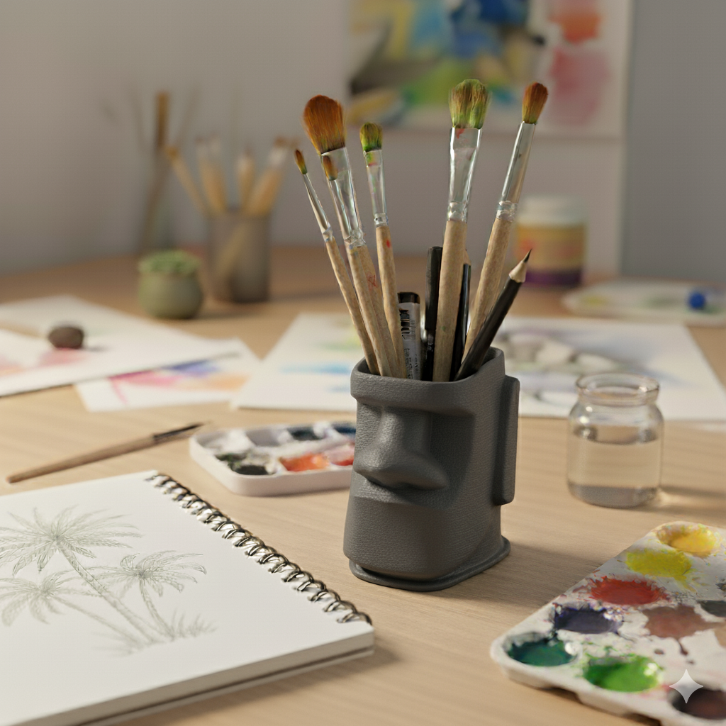 Moai Kafası Kalemlik – Masa Düzenleyici - Benzersiz Ofis Dekoru