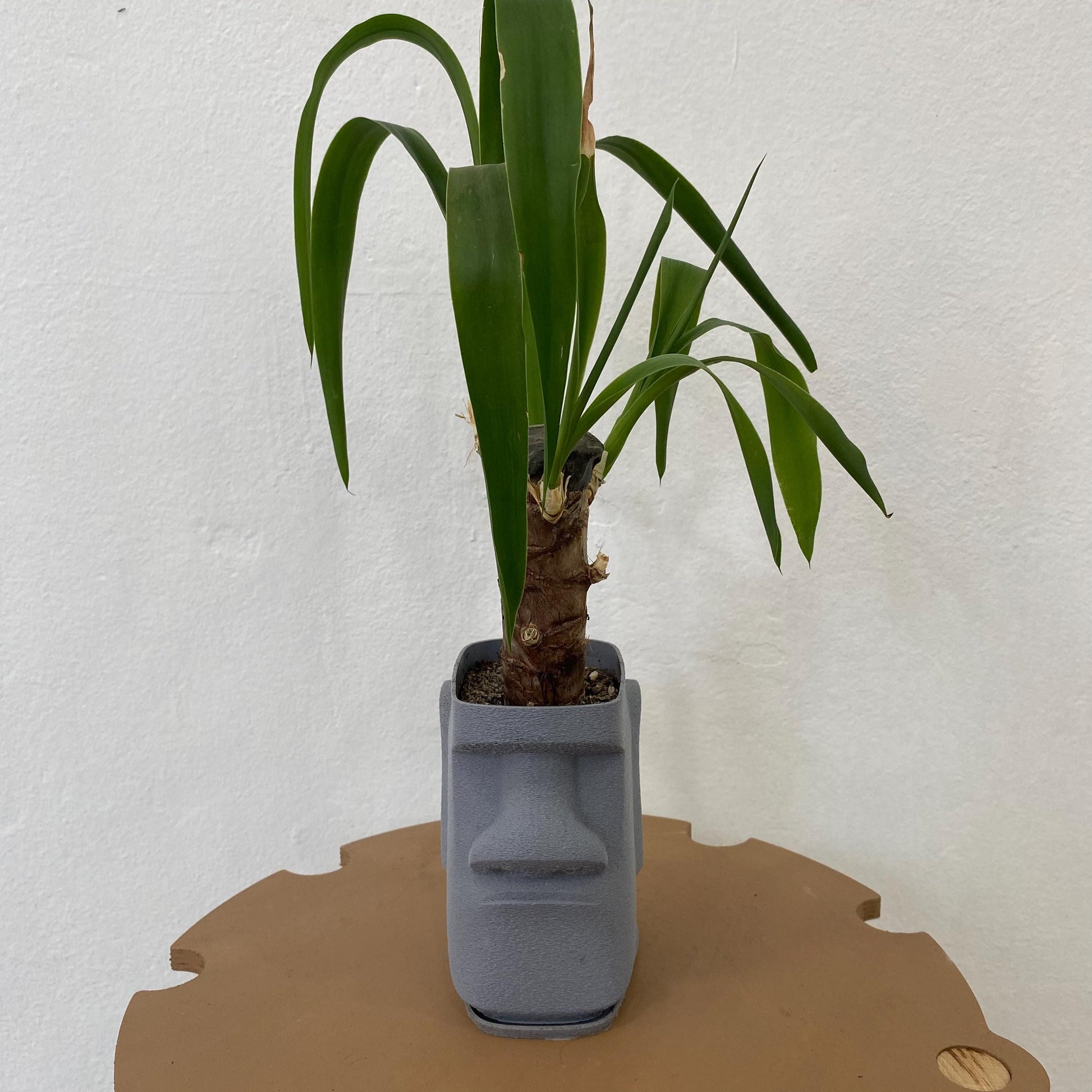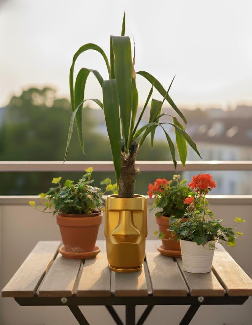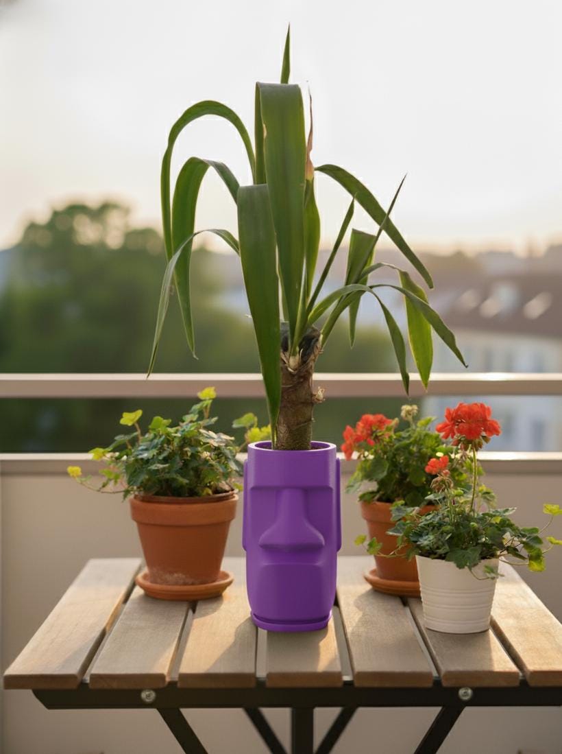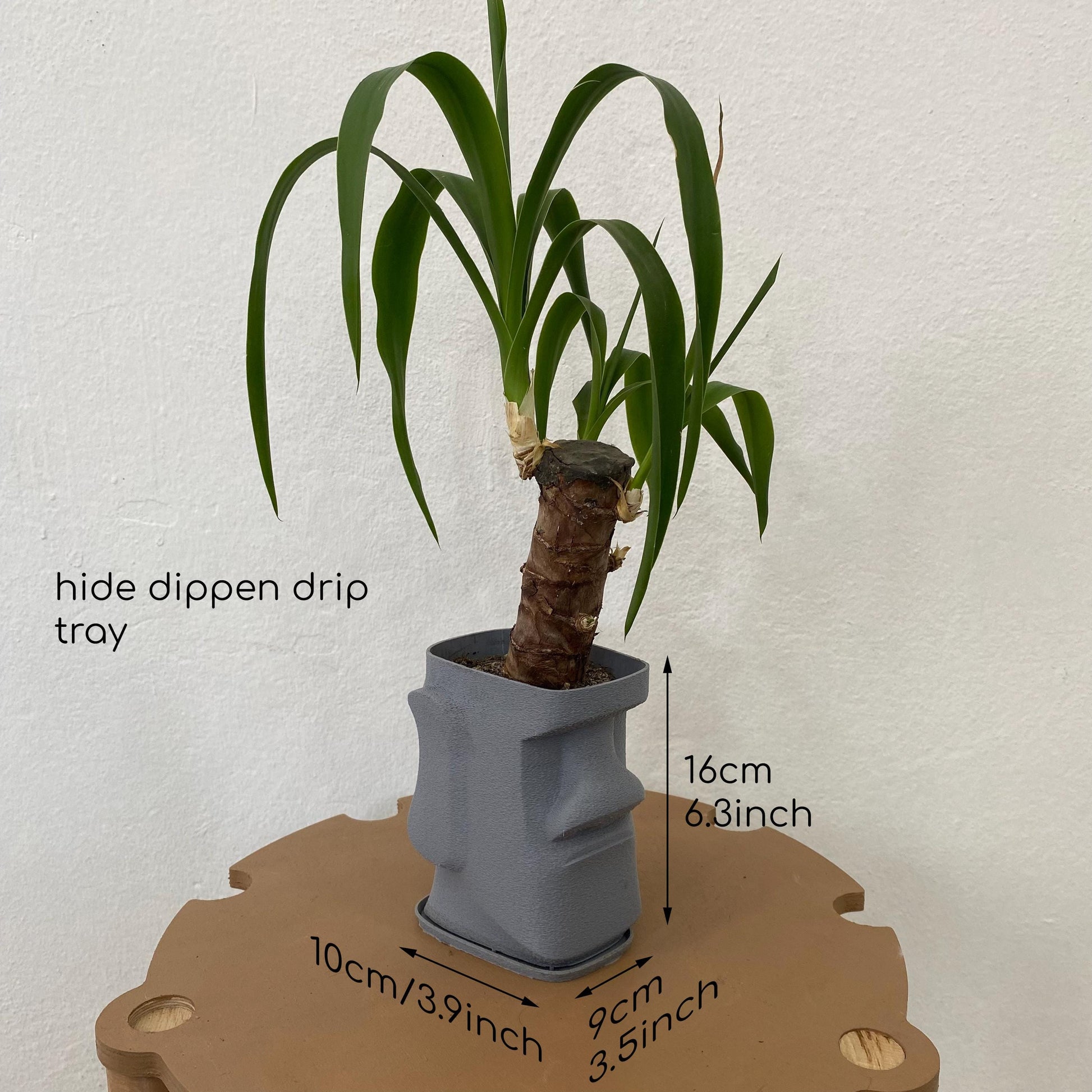 Moai Kafası Saksı – Gizli Damlama Tepsili Modern Yüz Çiçeklik