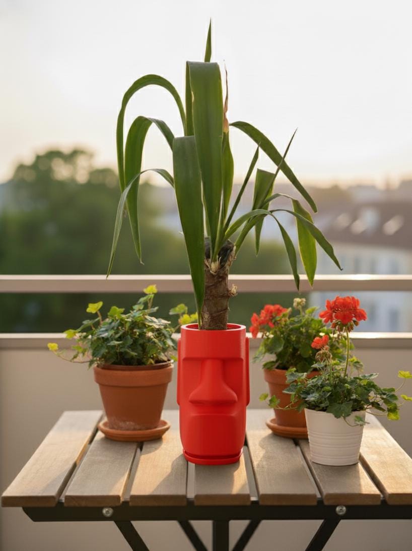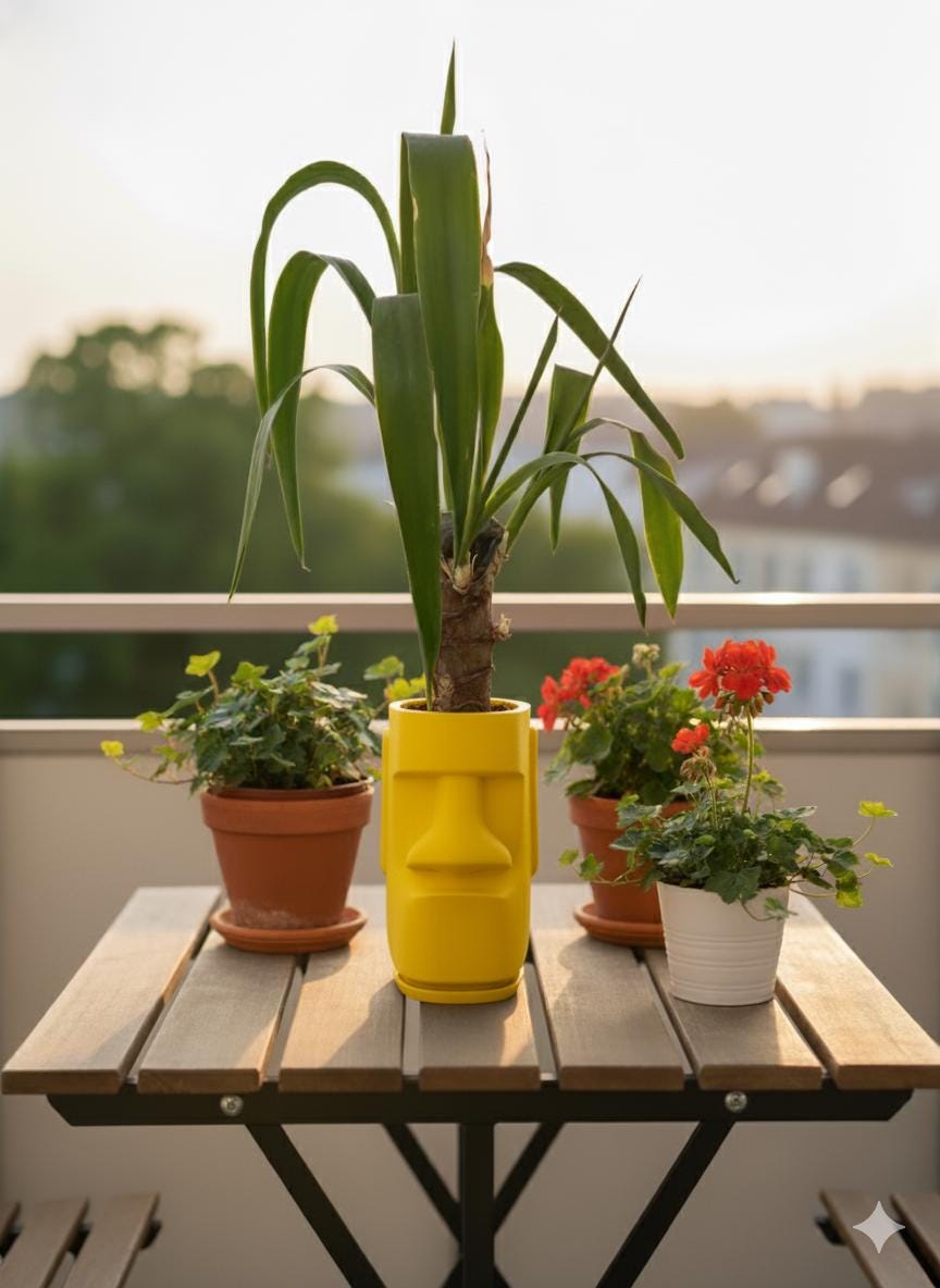 Ünlü Paskalya Adası heykellerinden ilham alan bu Moai Kafası Saksı, modern yüz tasarımıyla yaşam alanlarına hem eğlenceli hem de şık bir dokunuş katar. Entegre gizli damlama tepsisi sayesinde sulama sonrası suyu gizlice toplar; yüzeylerin temiz ve kuru kalmasına yardımcı olur. Dayanıklı, bitkiler için güvenli kompozit plastik malzemeden üretilmiştir.
