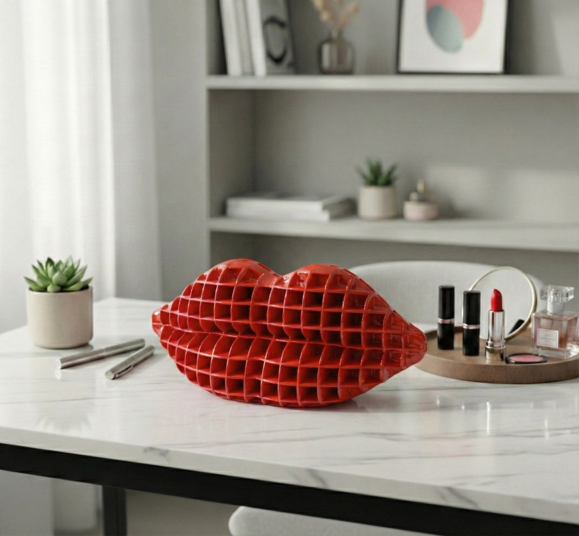 Modern Dekoratif Dudak | Estetik Makyaj Masası Düzenleyici
