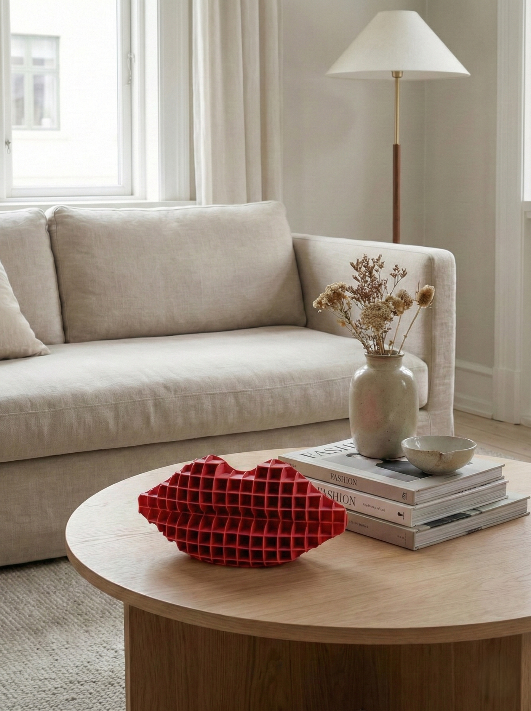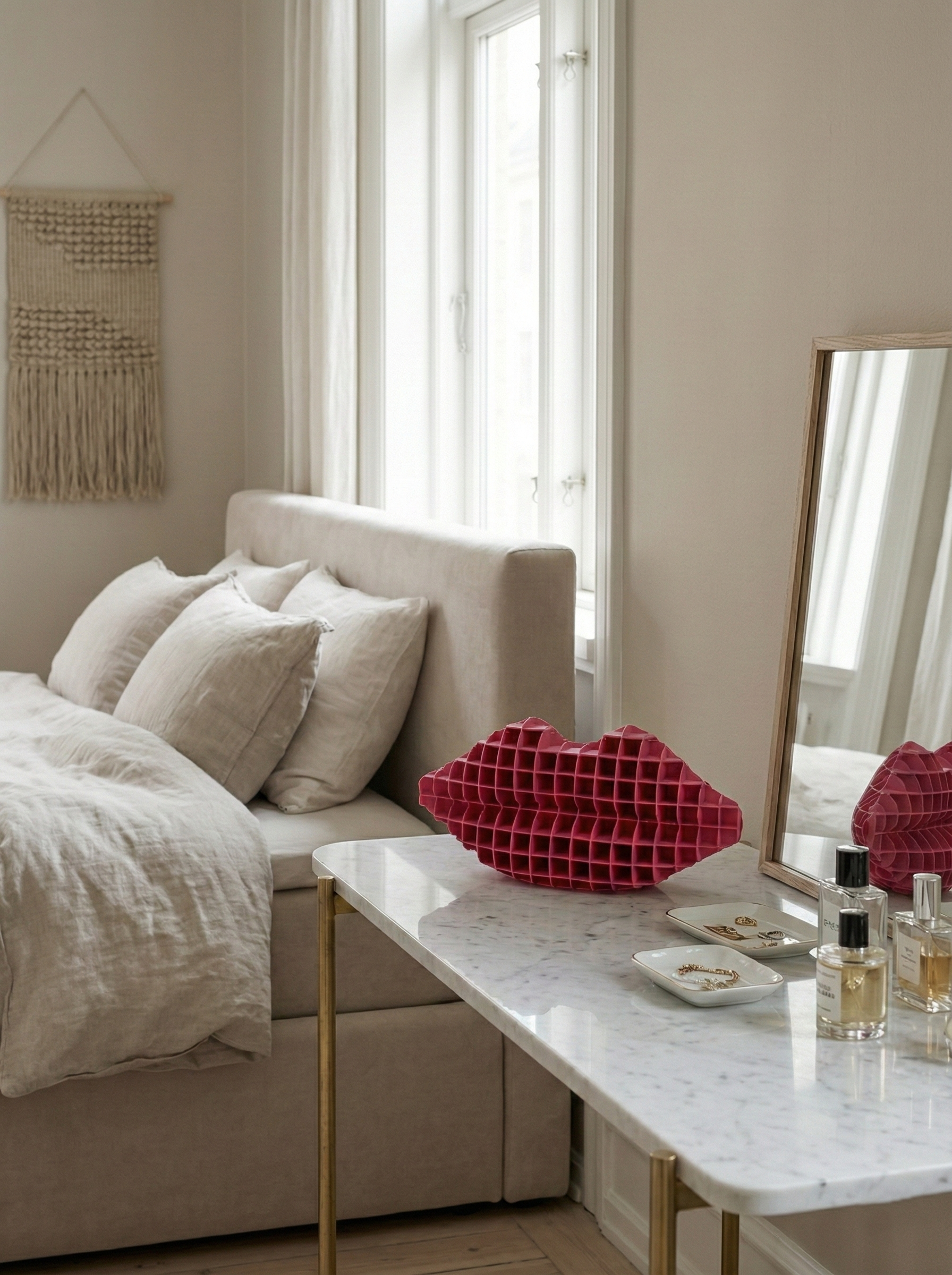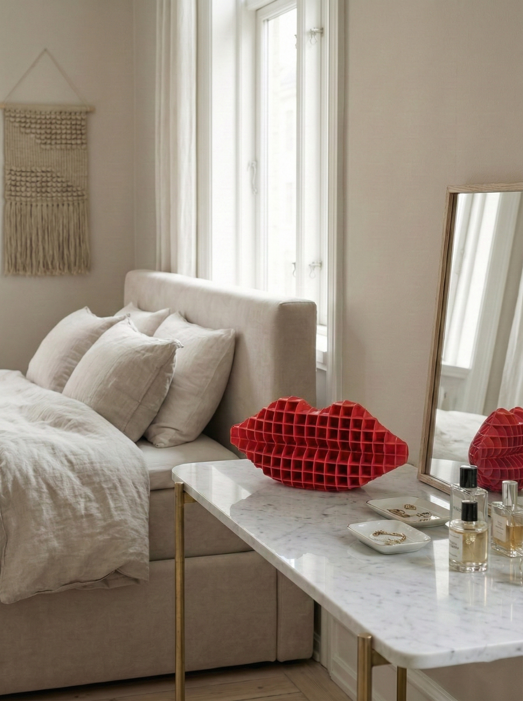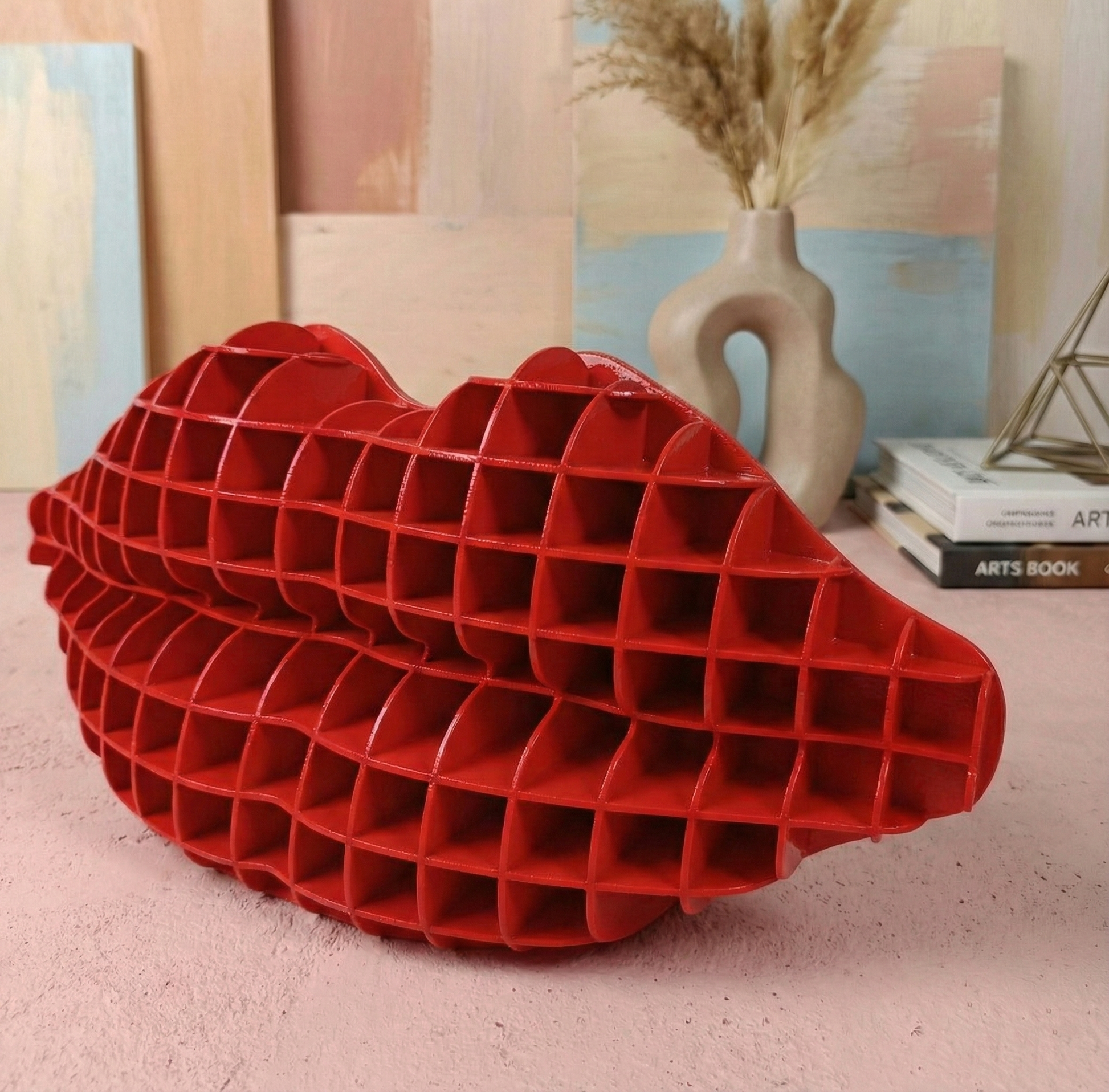 Dudak formundan ilham alan bu dekoratif organizer, modern tasarımıyla yaşam alanlarınıza estetik bir dokunuş katarken günlük kullanım için pratik bir çözüm sunar.
