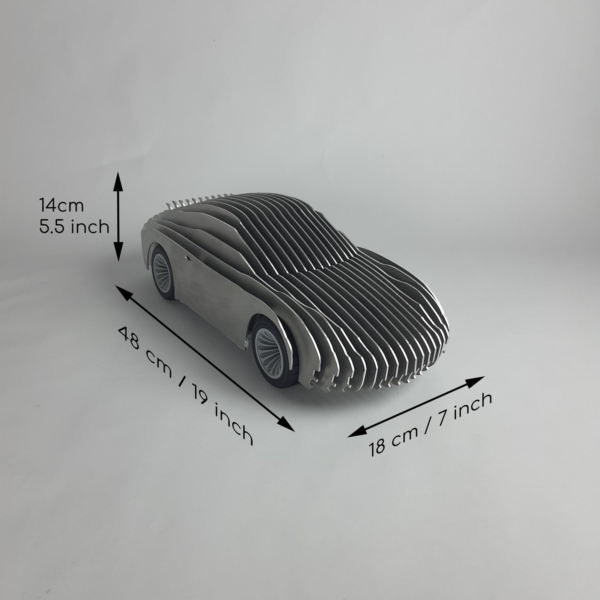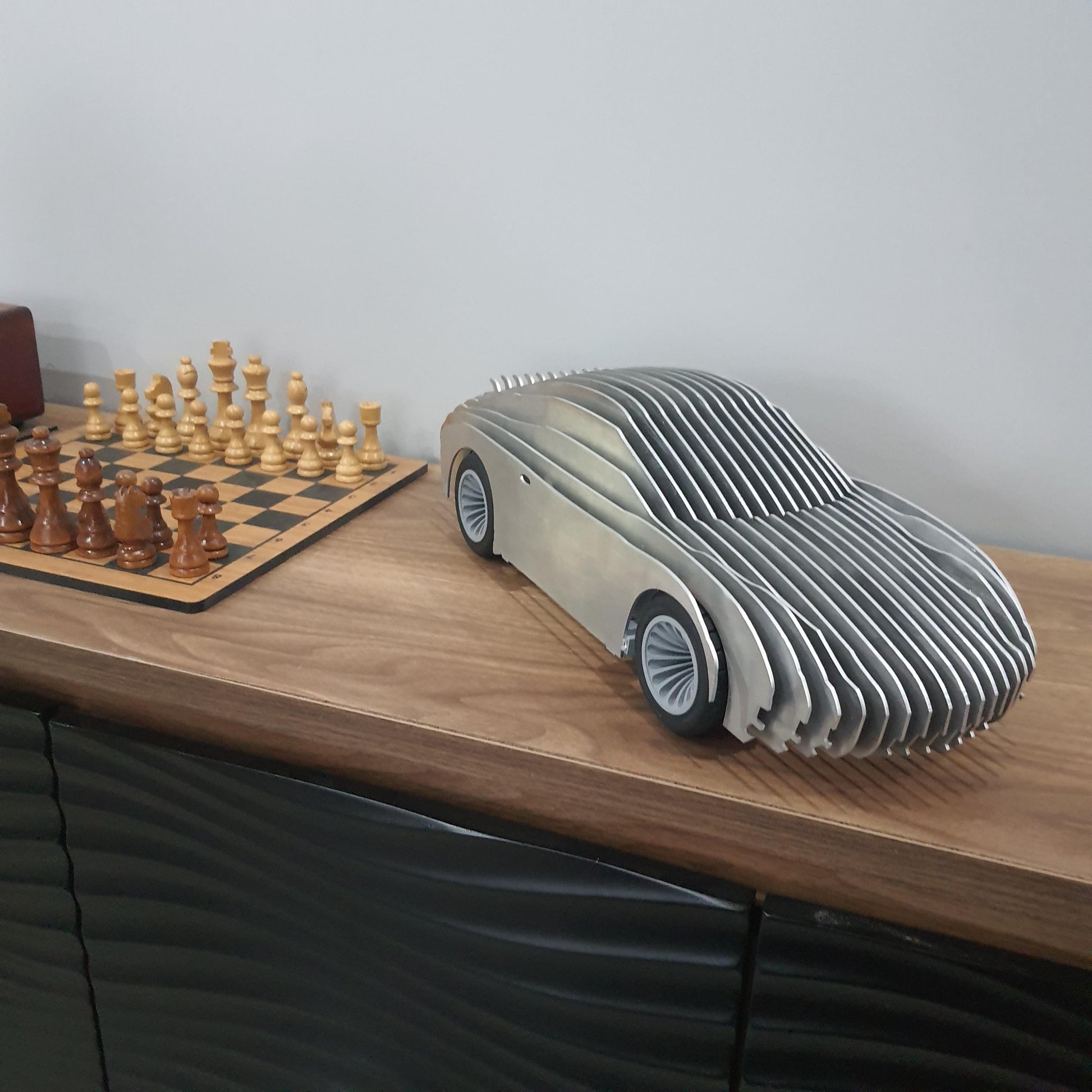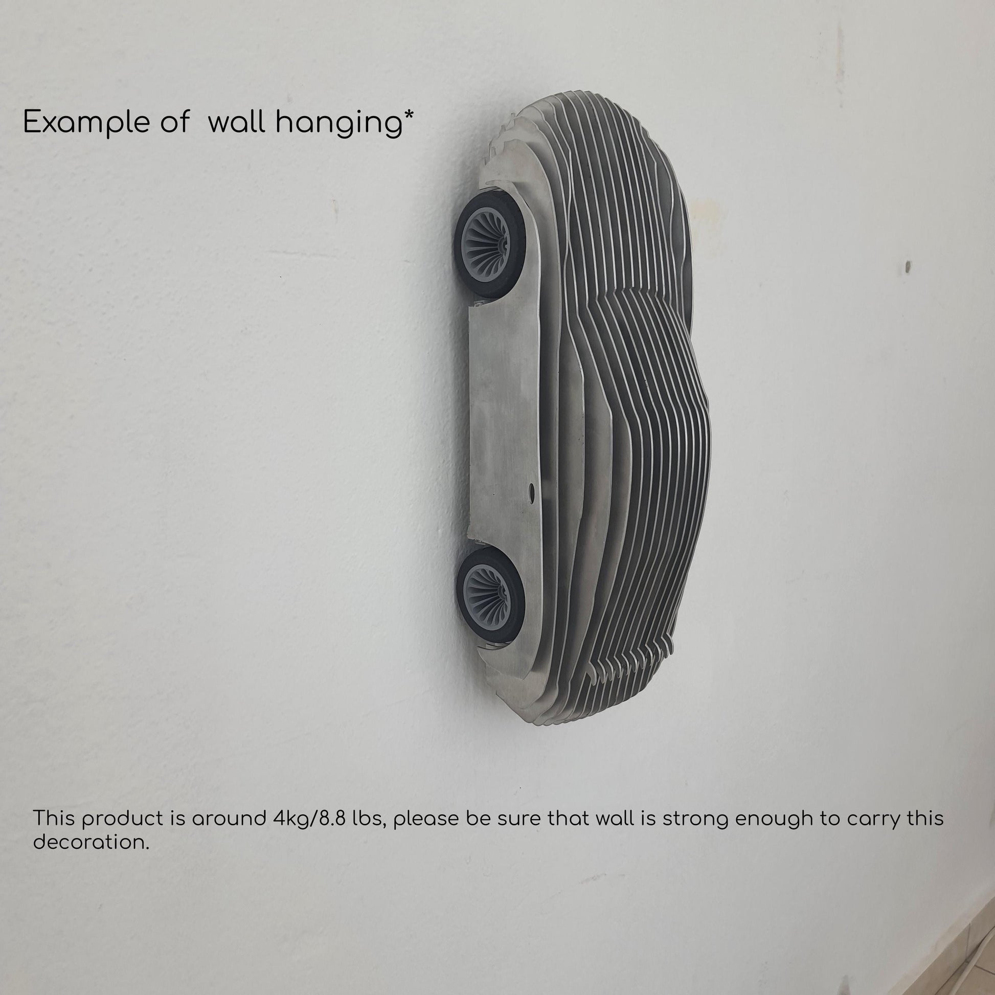 Otomobil tutkunları ve modern tasarım meraklıları için tasarlanan bu metal heykel, 911 silüetini çağdaş, katmanlı (lamelli) bir formda yorumlar. Alüminyum malzeme yapısıyla hem sağlam hem de şık bir görünüm sunar. Salon, çalışma odası, showroom, ofis resepsiyonu ya da vitrin gibi alanlarda güçlü bir odak noktası oluşturur. Duvar uygulaması yapılmak istendiğinde, ürünün yaklaşık 4 kg olduğunu ve duvarın taşıma kapasitesinin kontrol edilmesi gerektiğini lütfen dikkate alın.