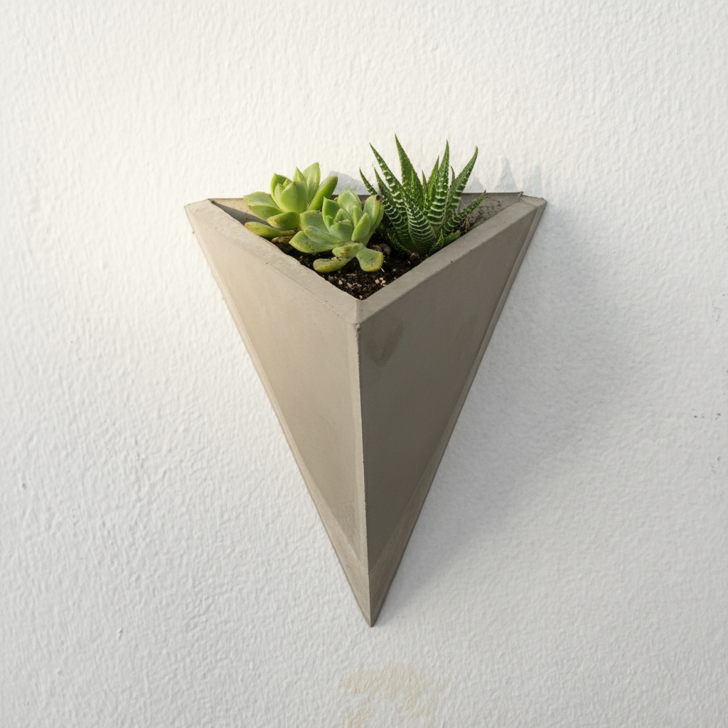 Duvarlarına hem yeşil hem de heykelsi bir dokunuş katmak isteyenler için tasarlanan Üçgen Beton Duvar Saksısı, tamamen gerçek betondan üretilmiştir.
